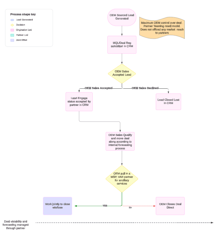 In a partner-sourced model, the partner owns the origin and typically receives larger margin and control over the deal. In an origination sourced motion, the OEM retains the bulk of revenue credit, with partners playing a fulfillment role.